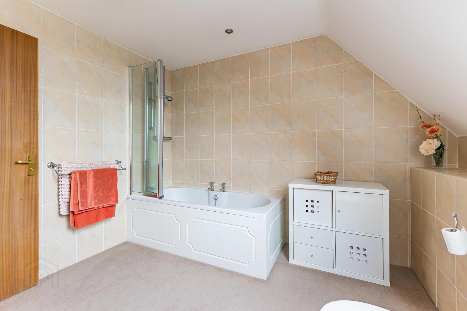 Upstairs offers three well proportioned bedrooms with the master bedroom providing two double built in wardrobes in an already impressive sized bedroom, the landing has a superb walk in storage room with a radiator to offer the desired hotpress idea, a sizeable bathroom consists of a w/c, sink and bath with mains shower.