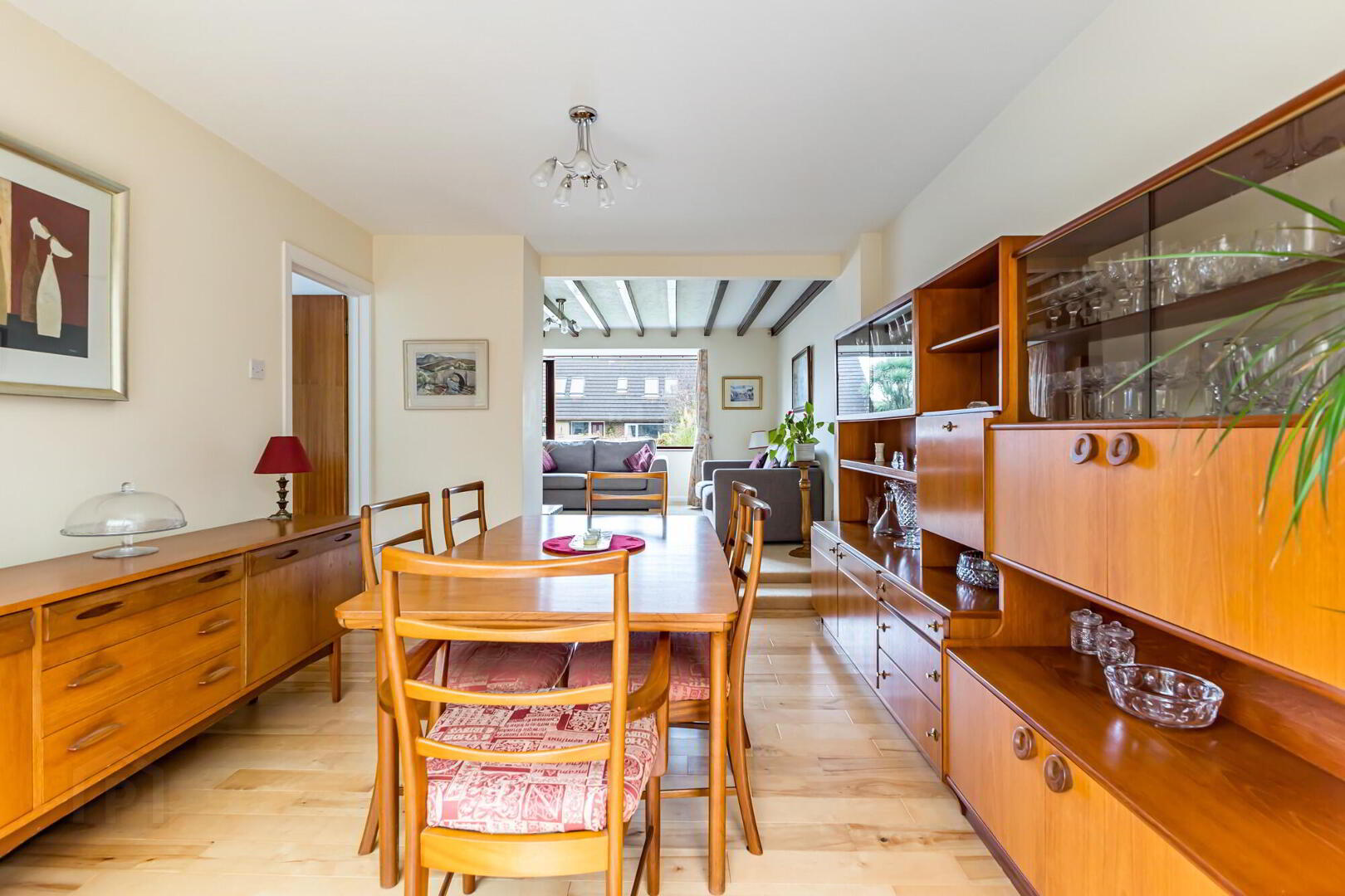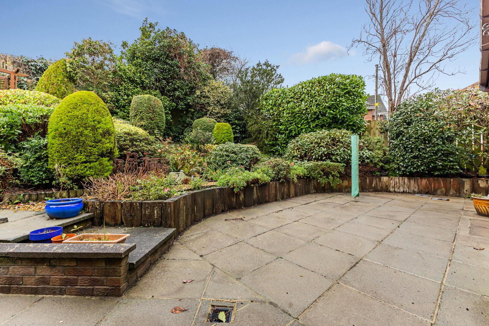 Externally the front provides a multi car driveway leading to a spacious detached garage and lawns with small trees and shrubs, the south facing enclosed rear is a display of rockery with small trees and flower beds with a patio area.