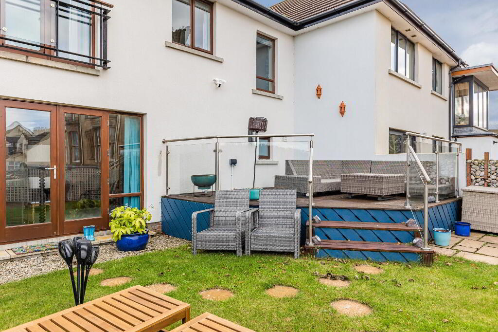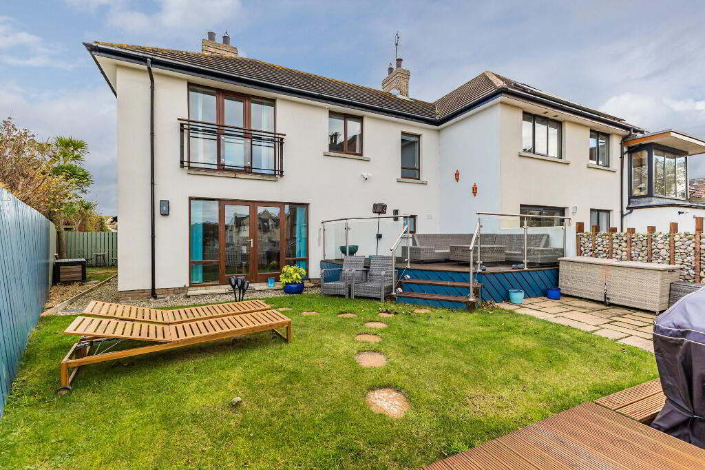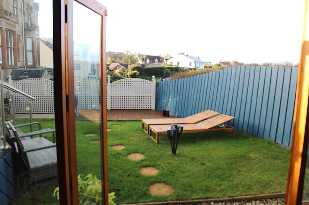 The rear offers superb views of the coast and lough views toward Belfast in a raised decking seating area, a lower level patio area and part lawns, incased with stone walls, there is also a small courtyard style side in lawns.