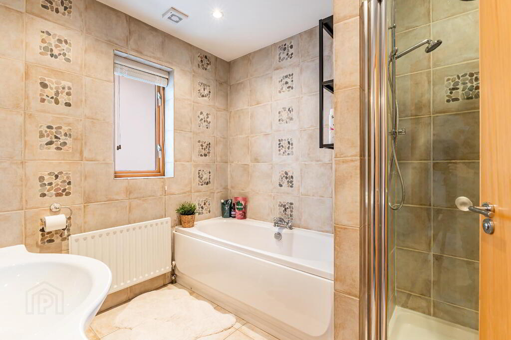 Deluxe fitted four piece suite consisting of a w/c, sink unit, bath and walk in shower cube, fully tiled floor and walls.