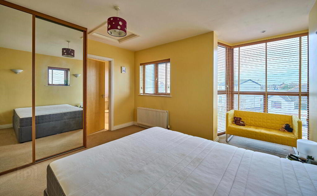 3.56m x 4.06m (11'08" x 13'04") Plus bay window, double built in robe.
