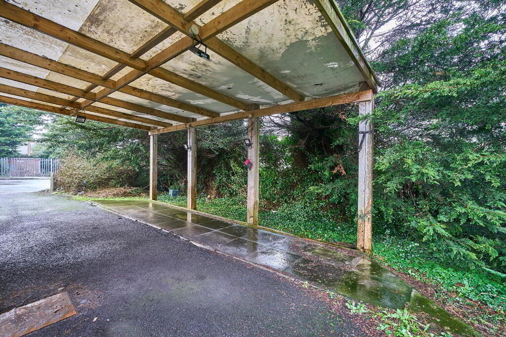 The front is in lawns with some shrubs, multi car driveway leading to the side and the rear is in lawns with some hedging.