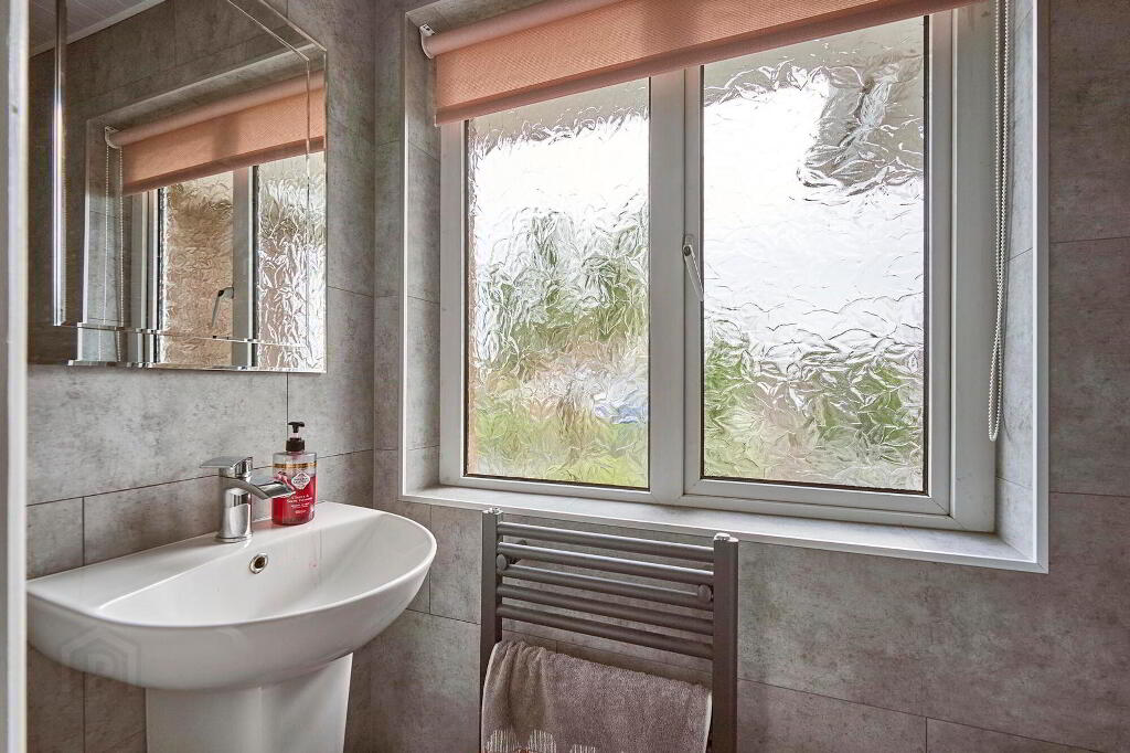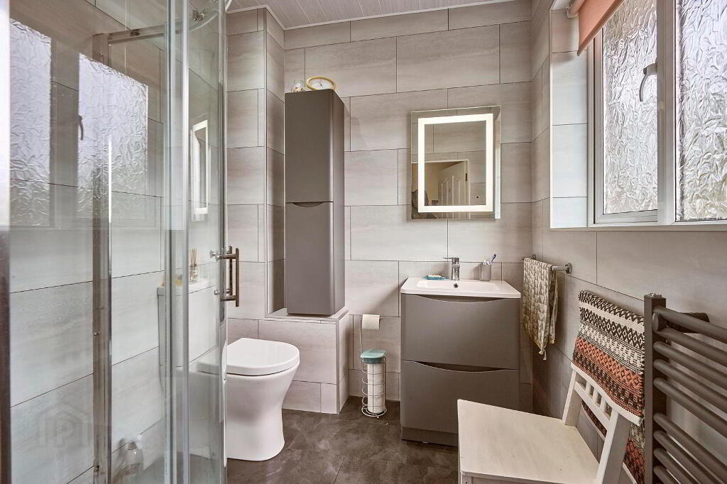 Deluxe fitted bathroom suite consisting of sink unit, bath and walk in double shower.