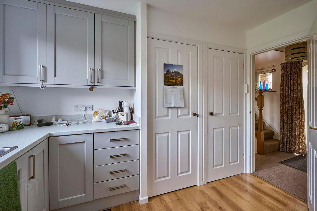 3.38m x 2.64m (11' 1" x 8' 8") Deluxe fitted utility room with a range of hi & lo level units, sink and storage cupboards.