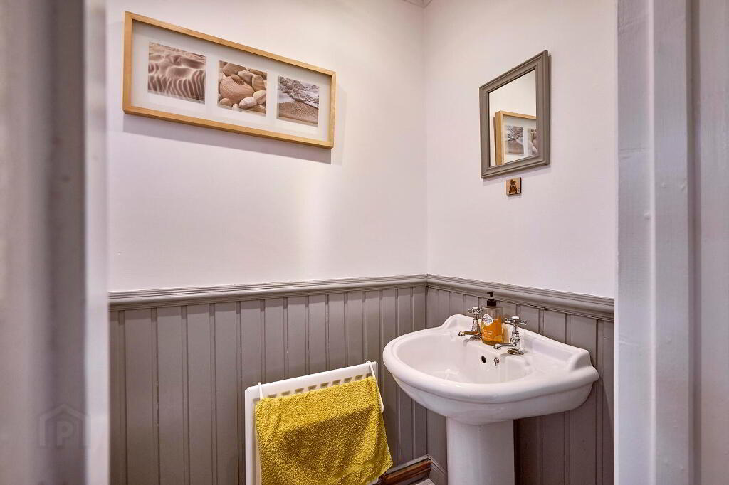 Generous enclosed south facing rear with a range of manicured lawns and hedging, substantial decorative paving and covered drying area.