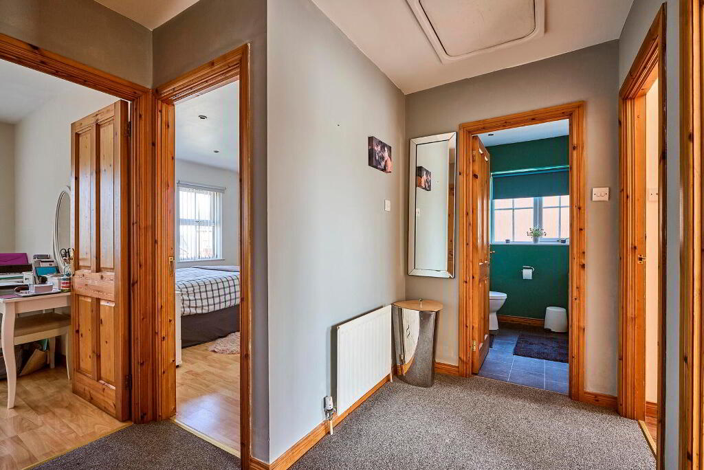 Spacious hallway leading to storage cupboard and downstairs w/c.