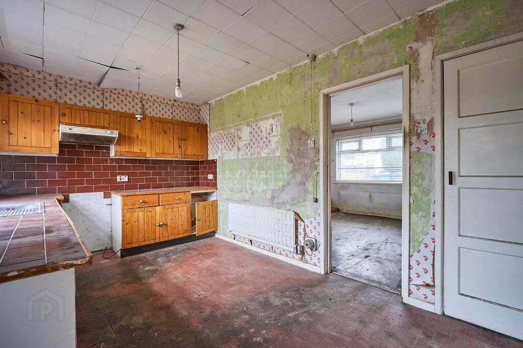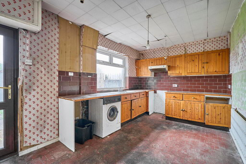Spacious dining kitchen with a range of hi & lo level units, plumb for washing machine and ample dining area.