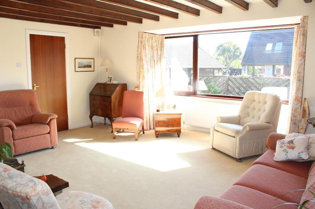 Externally the front provides a multi car driveway leading to a spacious detached garage and lawns with small trees and shrubs, the south facing enclosed rear is a display of rockery with small trees and flower beds with a patio area.