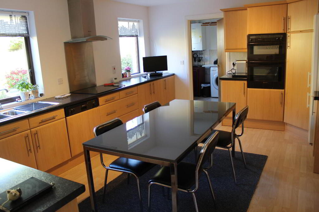 4.88m x 3.66m (16.02' x 12.07') Generous sized fitted kitchen with a built in HOTPOINT hob & double NEFF oven & dishwasher, overlooking the south facing rear and access to the utility room.